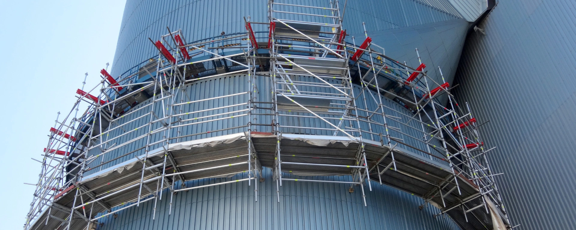 Unsere Spezialgerüste bieten wir für Einsatzgebiete wie Instandhaltungsarbeiten oder Großrevisionen, Schwerlastplattformen, Hängegerüste, Turm- und Brückeneinrüstungen, oder Behälter-Innenrüstungen an. Spezialgerüstbau ist so vielgestaltig wie die Architektur. Und immer stellt er eine ingenieurstechnische Herausforderung dar. Wir nehmen sie gerne an.